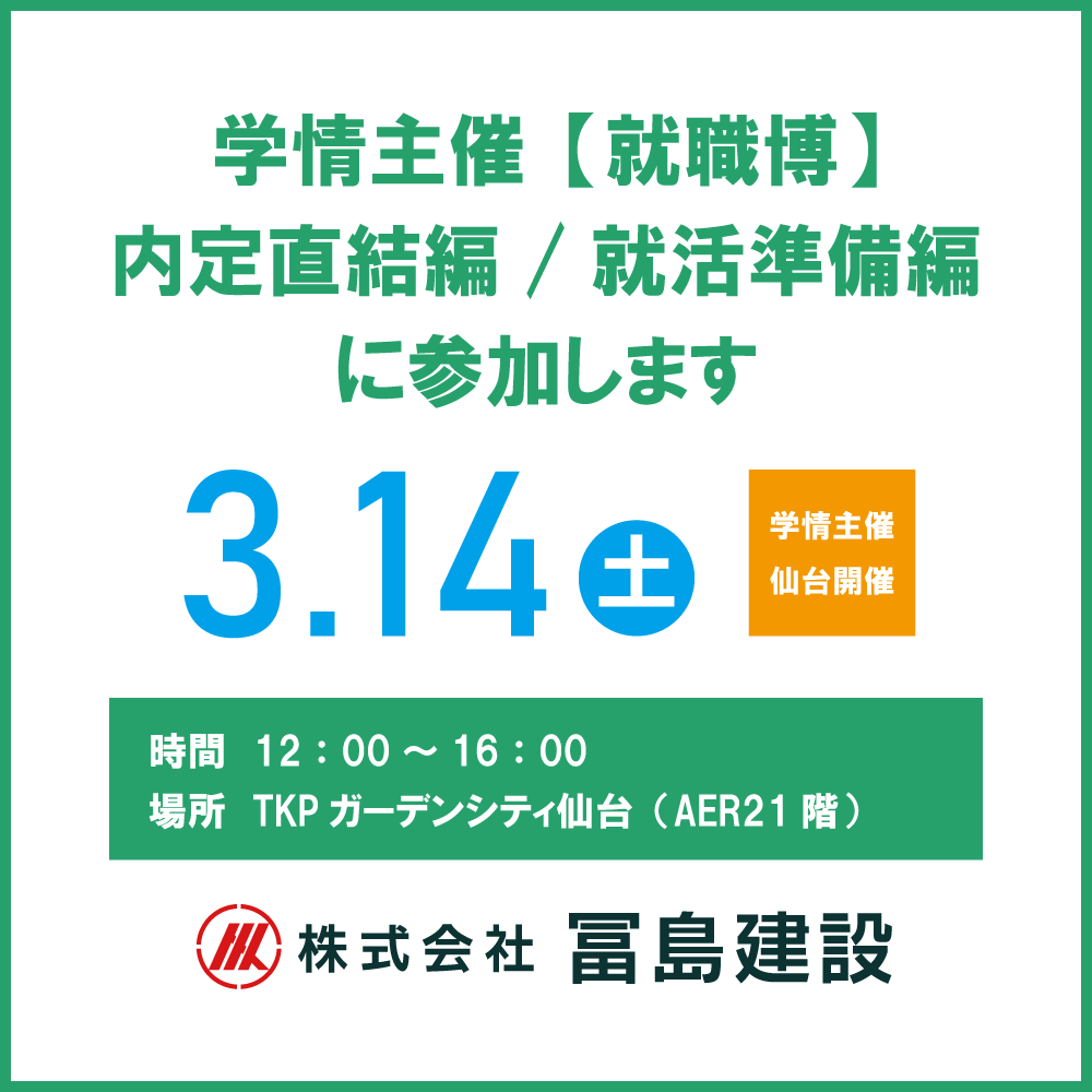 仙台開催『就職博 内定直結編/就活準備編』 に参加します!